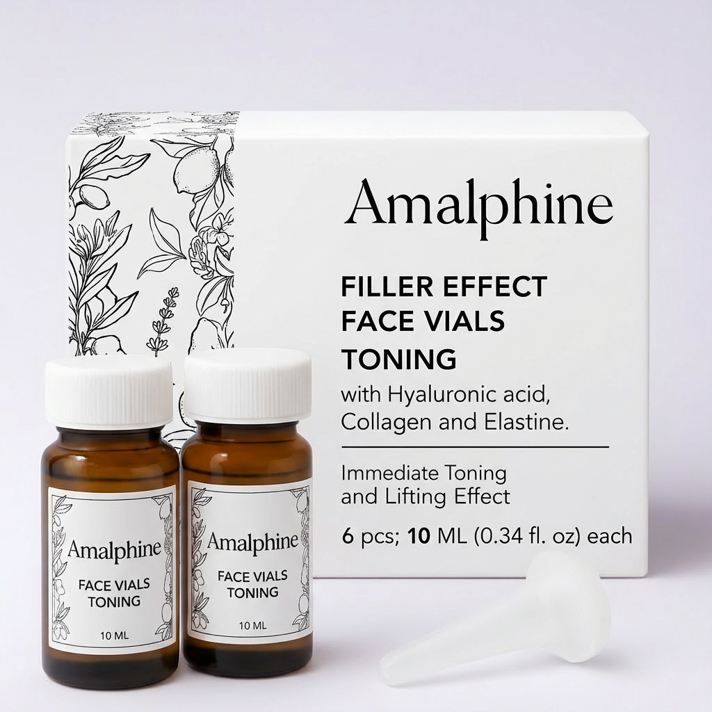 Each vial contains a concentrated dose of Hyaluronic Acid, Elastin, and Collagen, blended with Organic Chamomile and Organic Witch Hazel, to provide an immediate lifting effect and visibly tone the skin.